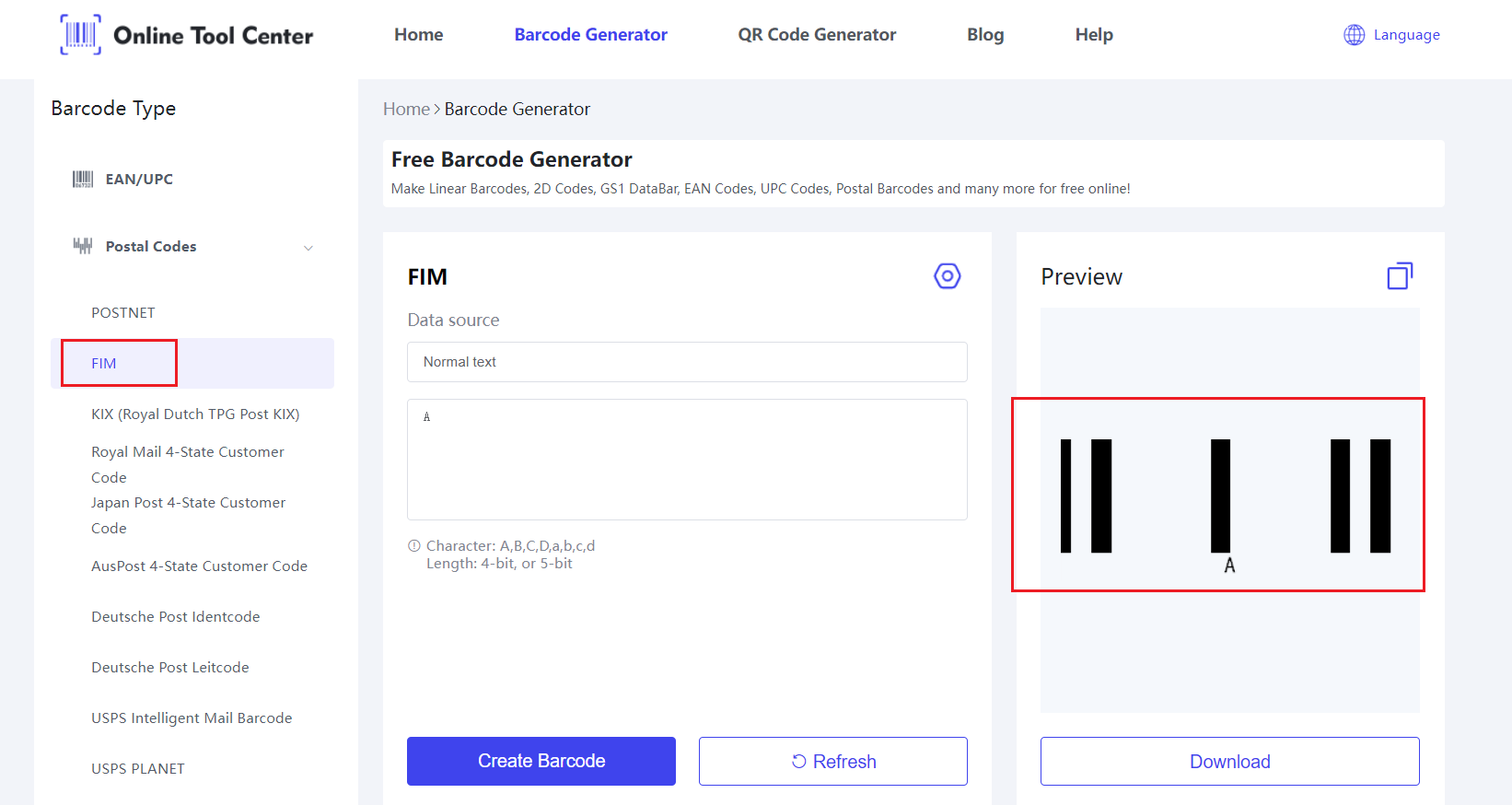 This FIM barcode generator provides features that ensure the barcodes meet USPS standards and are ready for printing and application on mail items.