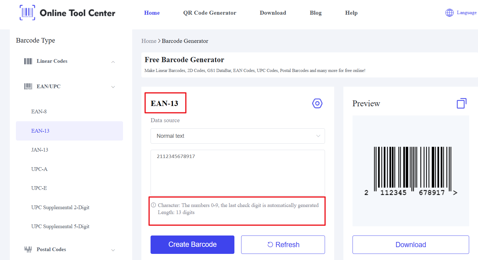2. Choose a Type: Pick UPC, EAN, or Code 128 based on your needs. Not sure? The site explains each one.